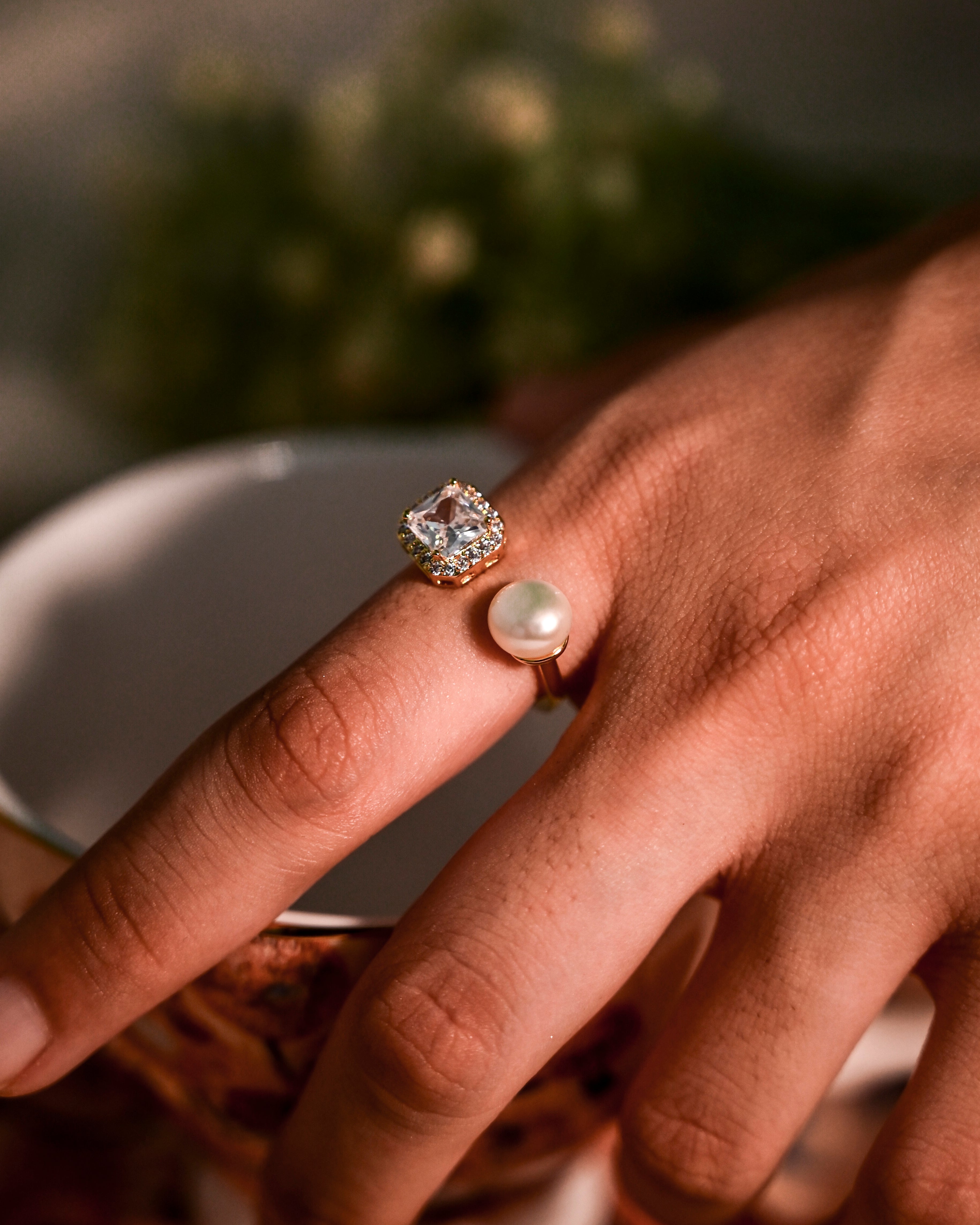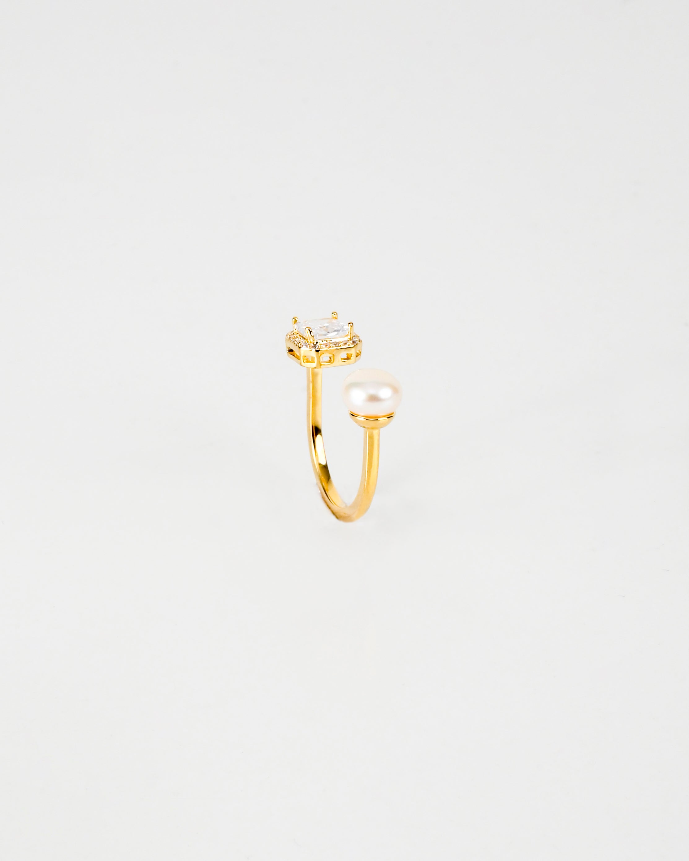 The Amaris ring is designed for those with a taste for the timeless. Featuring a lustrous pearl and a radiant cushion-cut crystal in perfect balance, this open ring speaks elegance without ever raising its voice. Ideal for when your hands are wrapped around coffee cups or champagne flutes — and you want them to look the part.