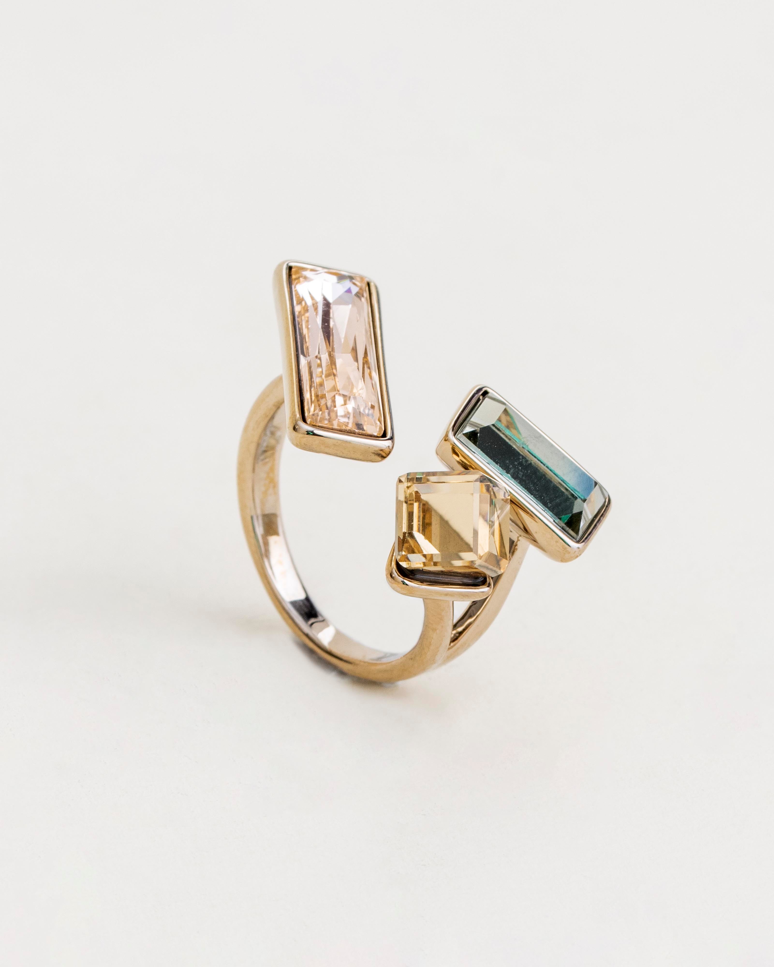 A delicate trio of gemstones, each uniquely cut yet harmoniously balanced. Soft, warm hues bring an understated elegance, making this piece perfect for everyday grace or a refined evening look.