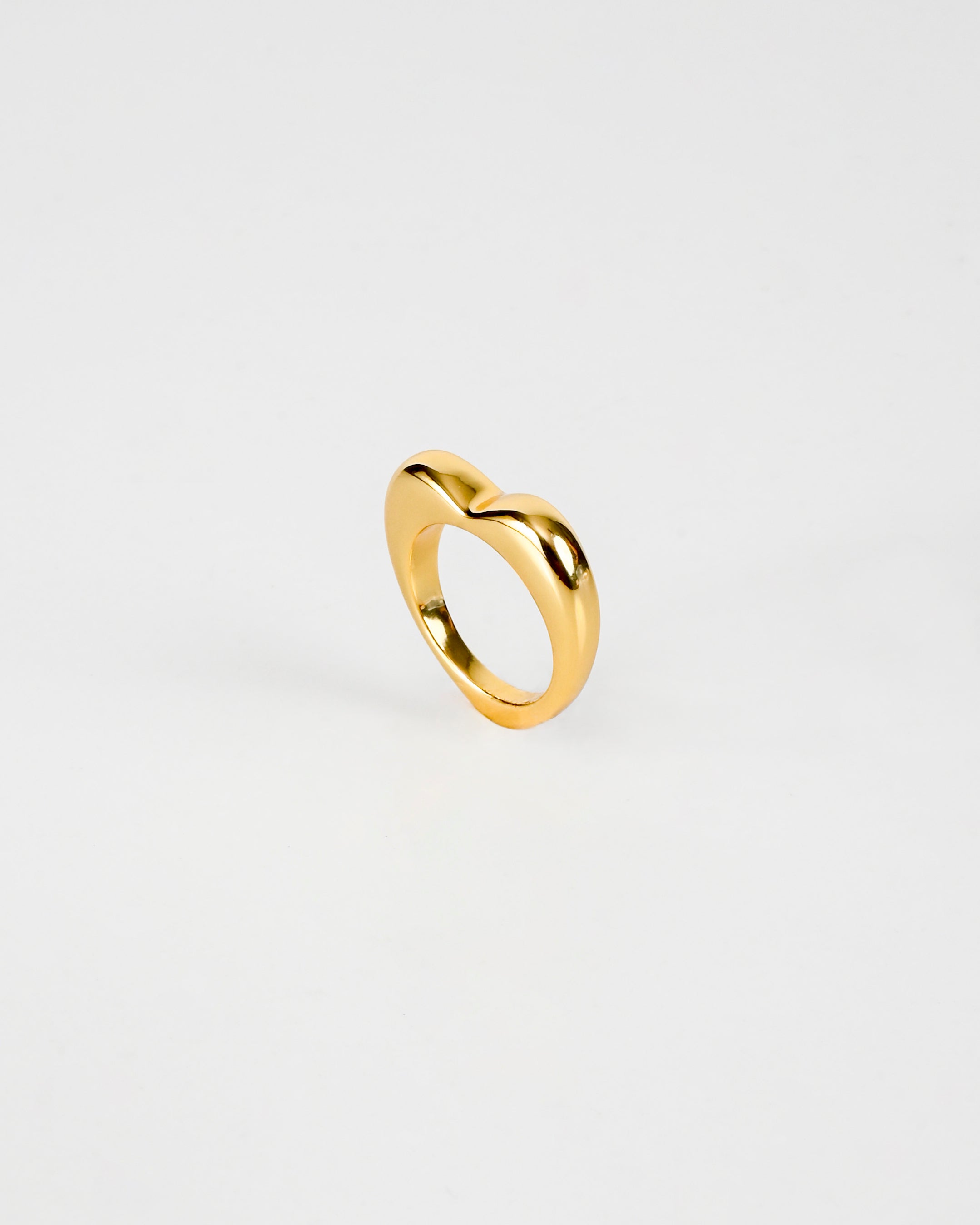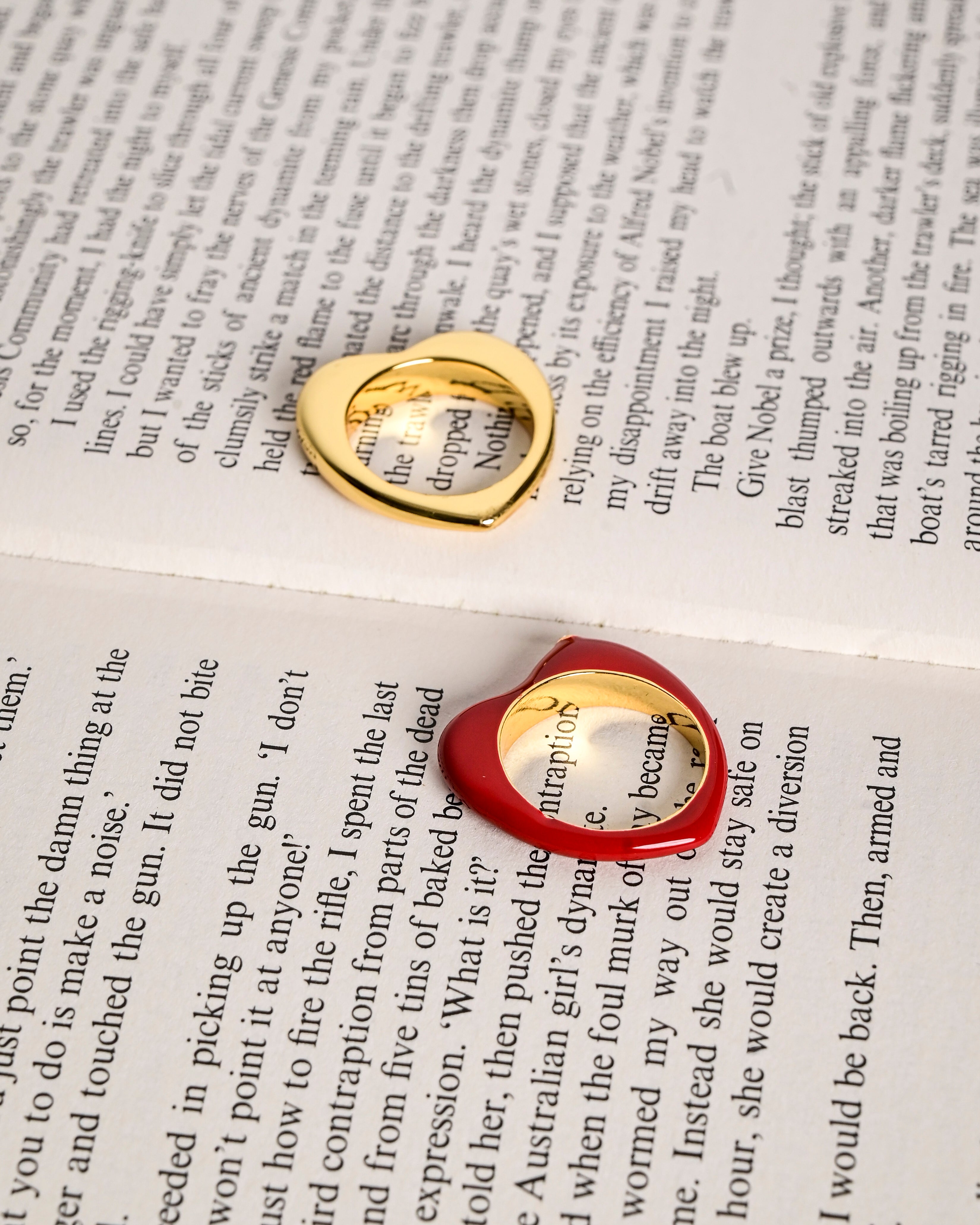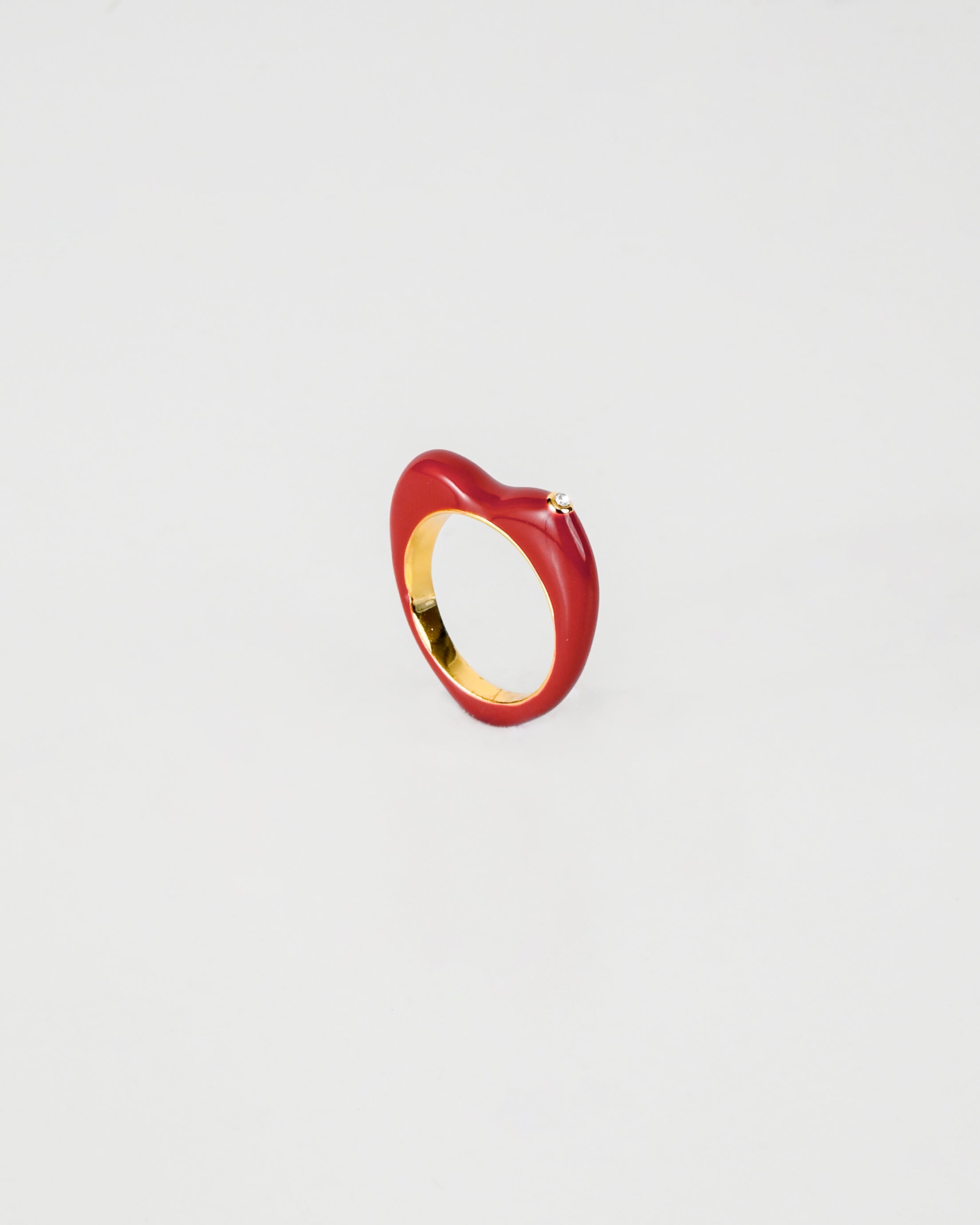 French for darling, the Chérie Ring is just that; a little love letter for your fingers. Designed with a soft heart-shaped peak, this sleek band adds a touch of whimsy to your everyday stack. Available in two radiant finishes: classic gold and cherry red enamel, Chérie is perfect whether you're feeling minimal or bold. Its smooth, domed surface catches the light effortlessly, making it ideal for wearing solo or layering with other playful silhouettes.