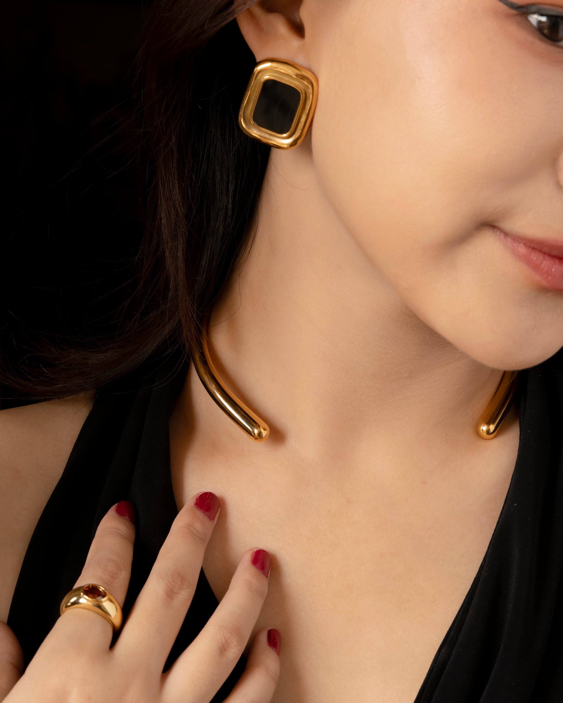 Rooted in traditional Indian goldsmithing and refined into a sculptural essential, the Goldsmith Hasli is a clean, chunky collar that can feel both warrior-esque and goddess-coded. It has a polished gold-toned finish and an open-ended collar silhouette for easy adjustment. The hasli feels editorial and heirloom all at once and has the potential to become your everyday elevated signature - worn on skin, against regular t-shirts or sharp tailoring.