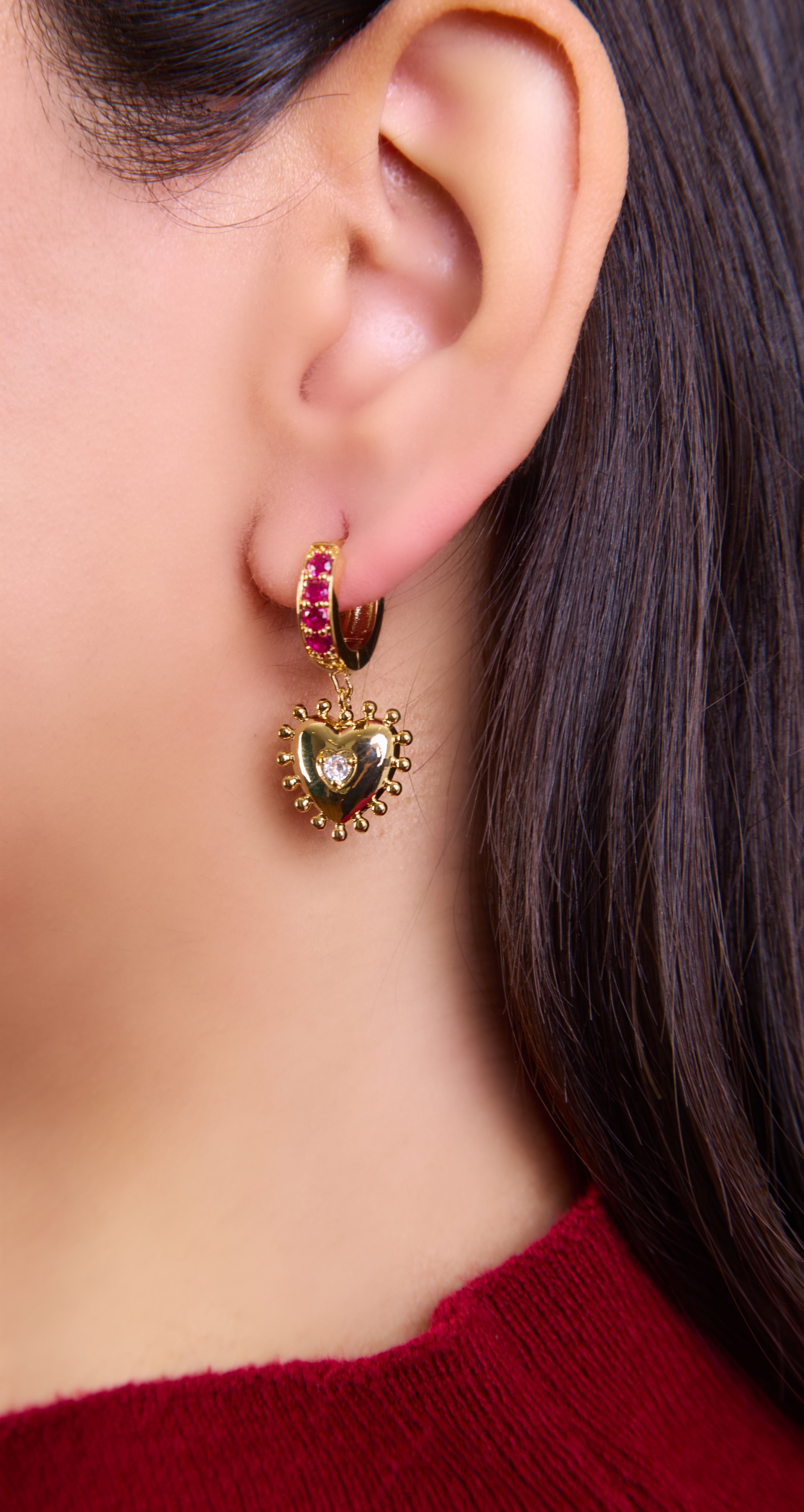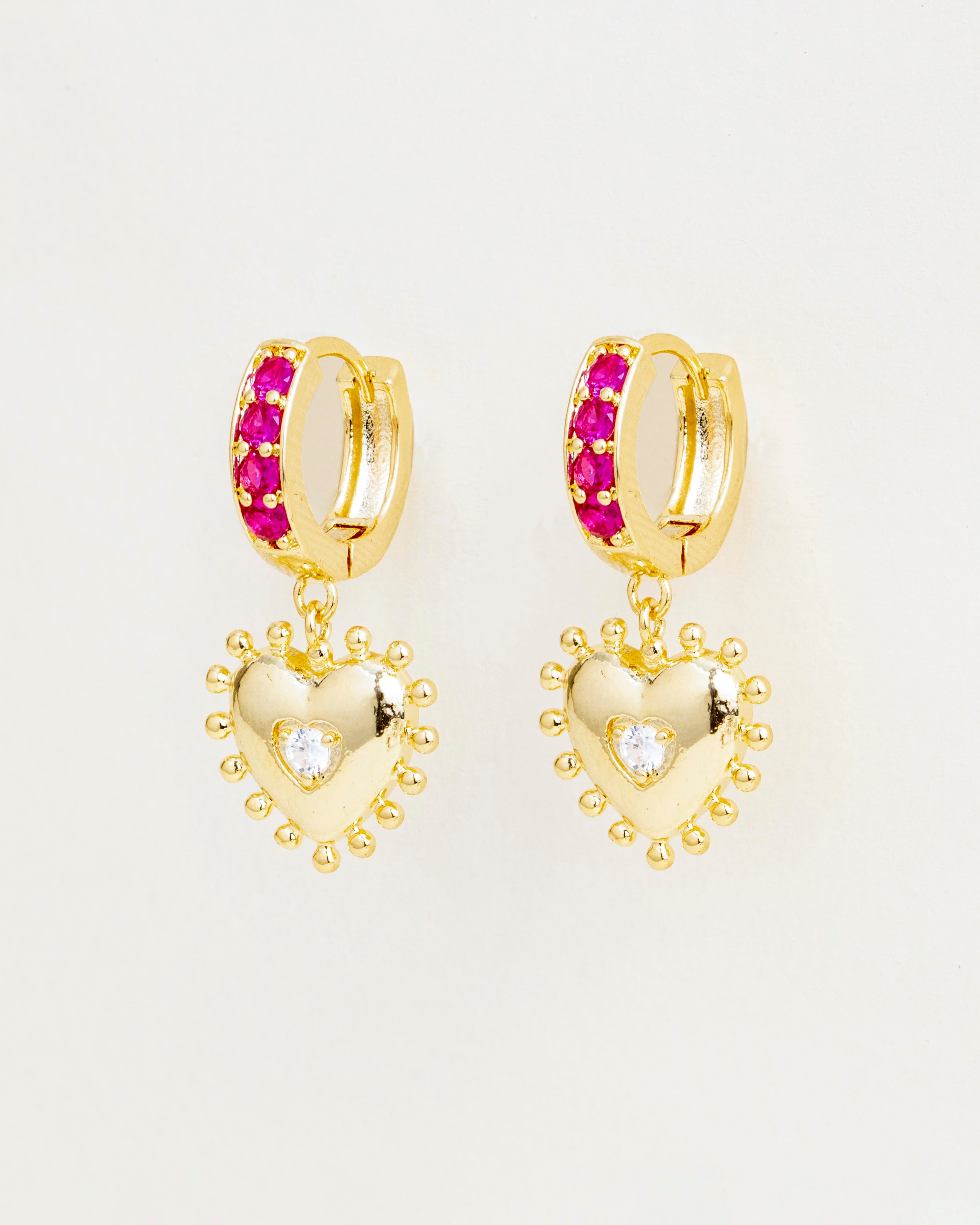 These dainty heart huggies bring a little romance with a touch of edge—gold-plated with delicate beaded details and a sparkling crystal at the centre. The perfect mix of sweet and statement, they’re just as dreamy for a date night as they are for elevating your everyday essentials. Stack them against small gold studs, styling them with ribbed knits, baggy denims or your most vibrant t-shirt for that achingly lively look.