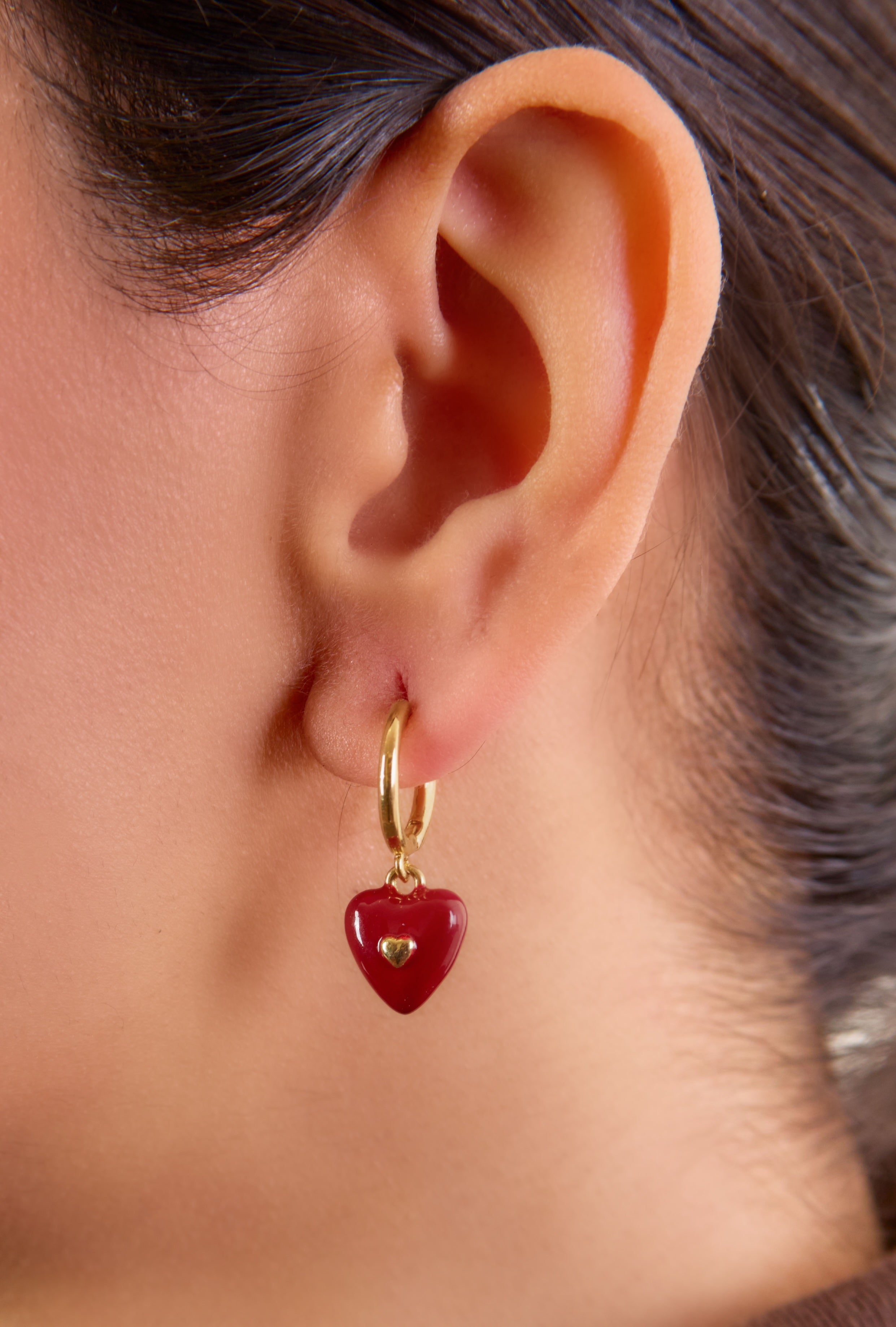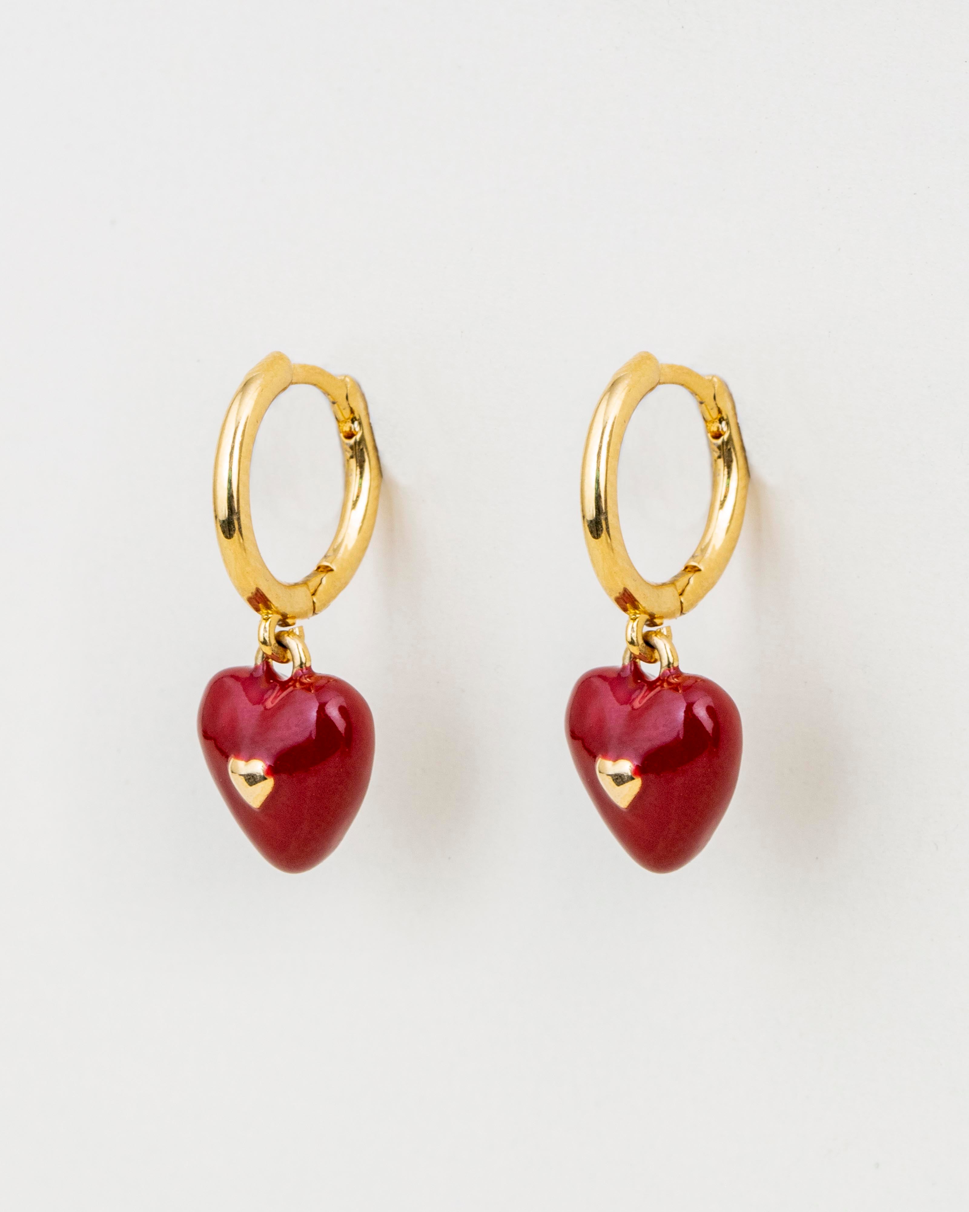 Vintage inspired, the red and gold combination with a dainty heart charm are perfect for the minimal wardrobe. Make them standout with a light-hued outfit.