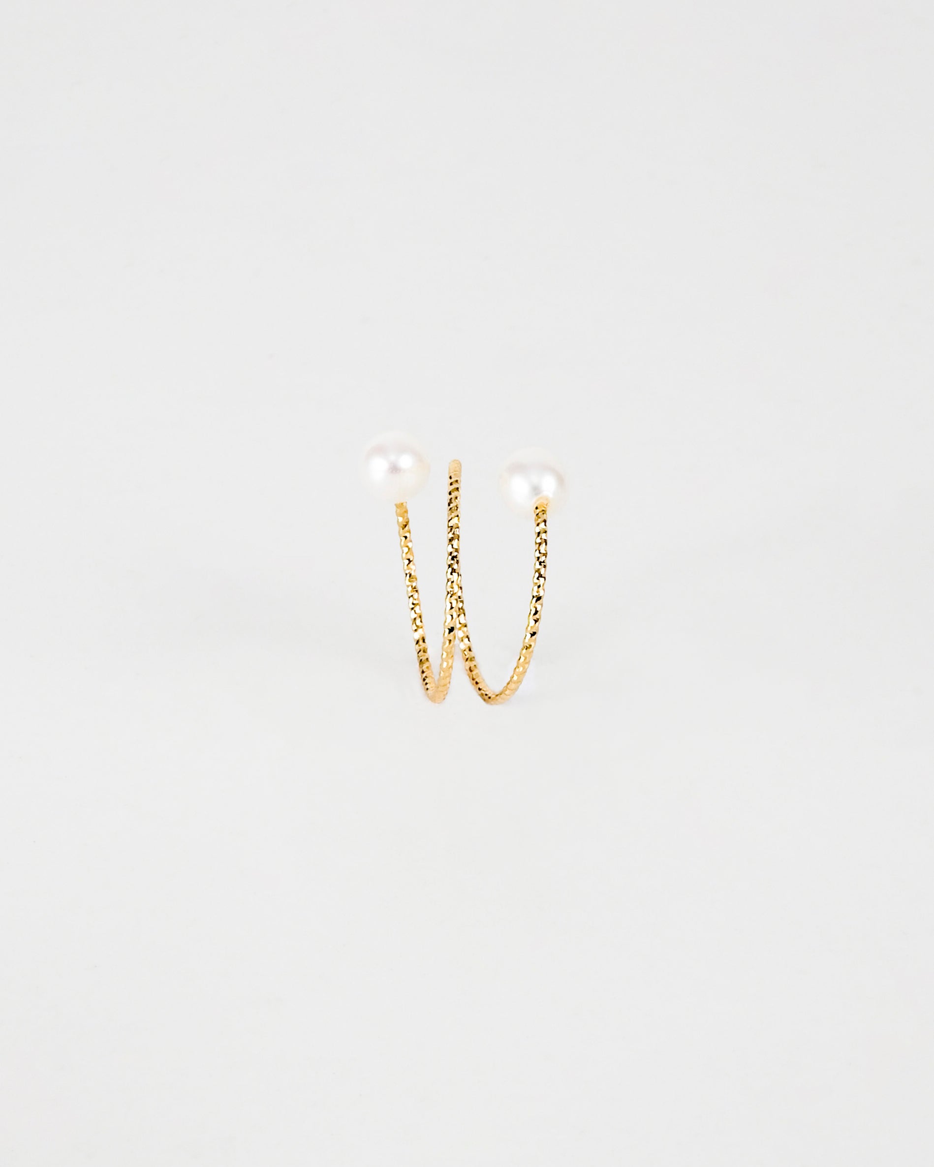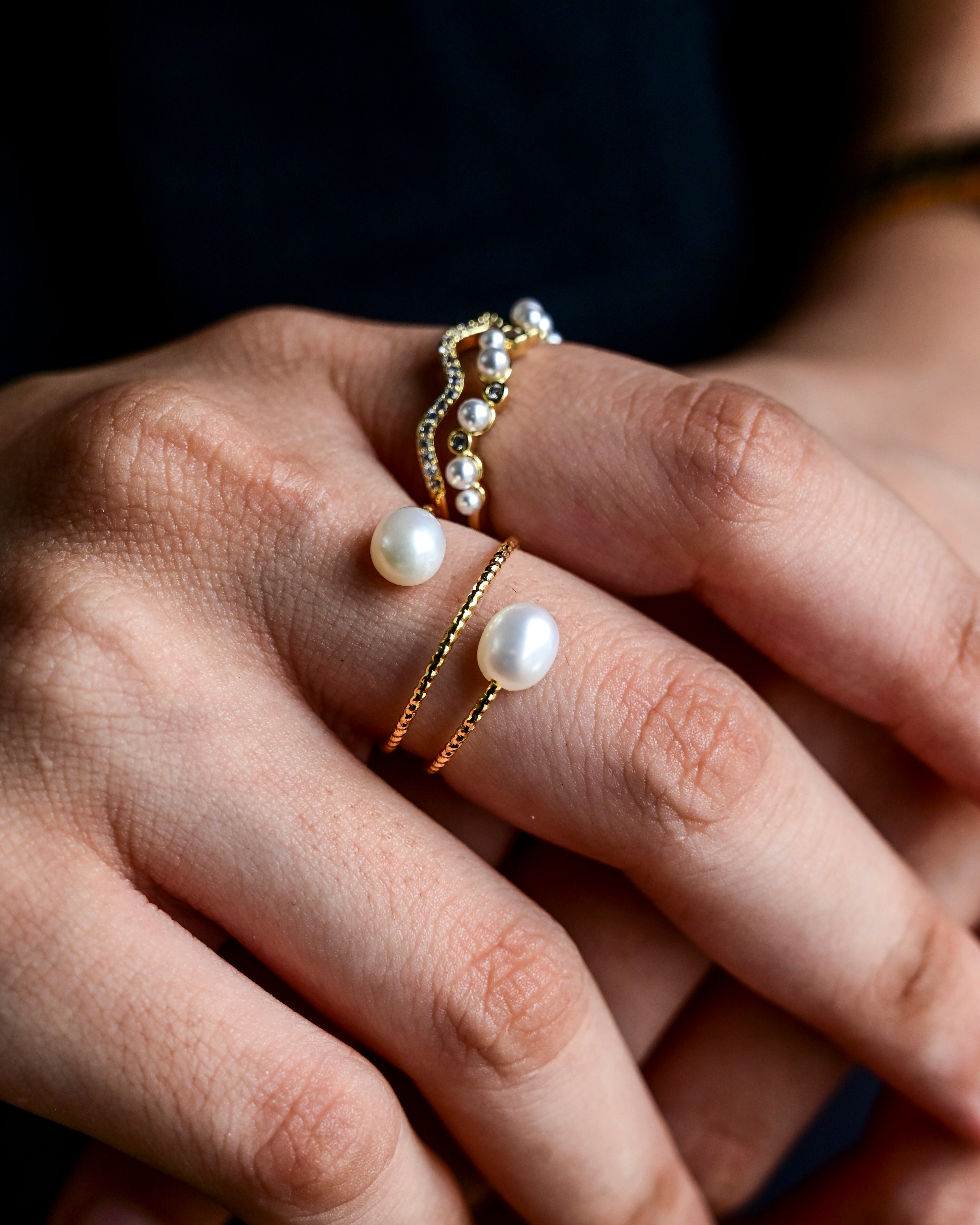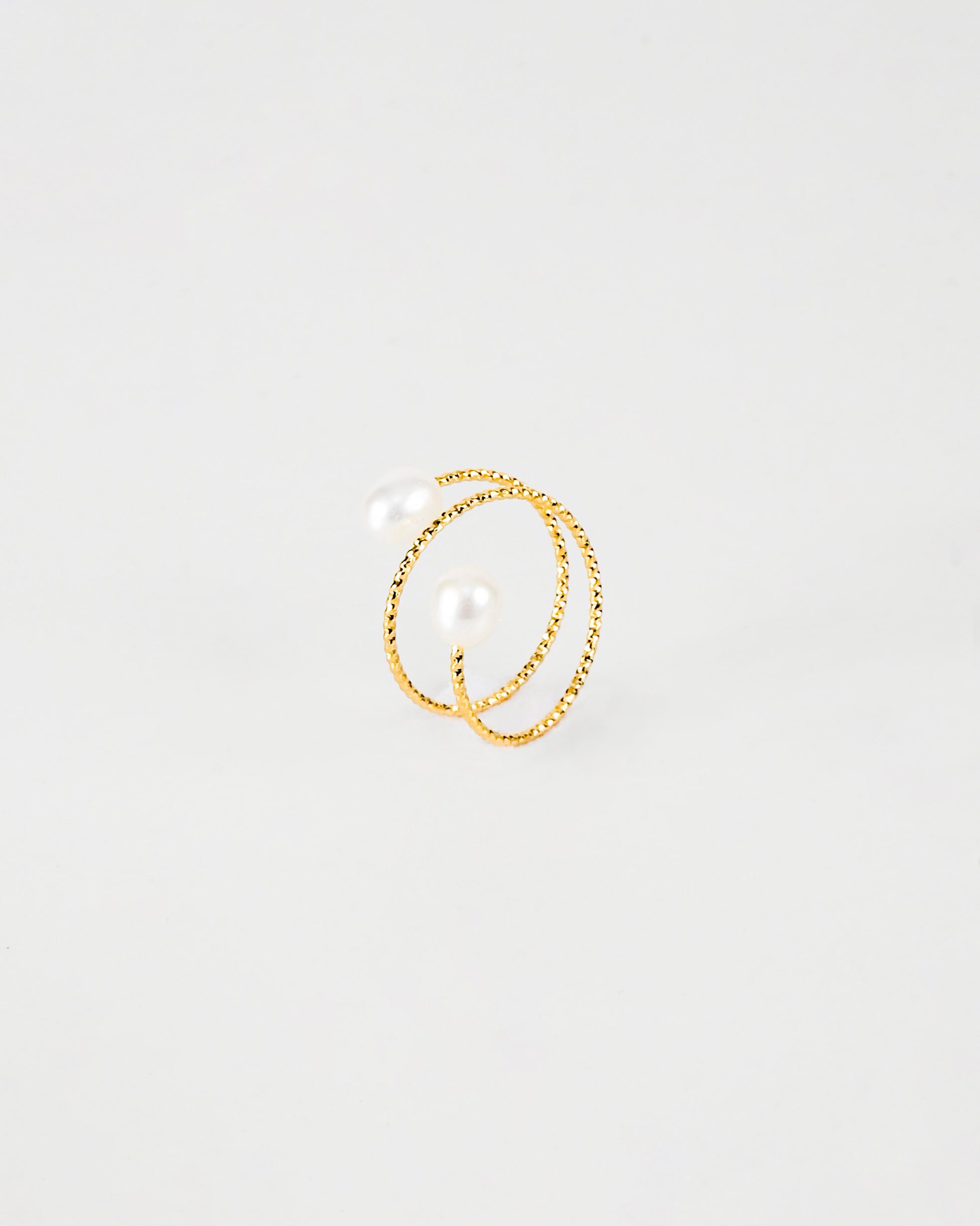 The Elowen Ring is a whisper of elegance, light as air, yet endlessly charming. With its spiral band that wraps delicately around your finger, this adjustable beauty is finished with two petite pearls that sit like quiet secrets on either end. A graceful choice for those who lean towards the whimsical, the soft, and the poetic.