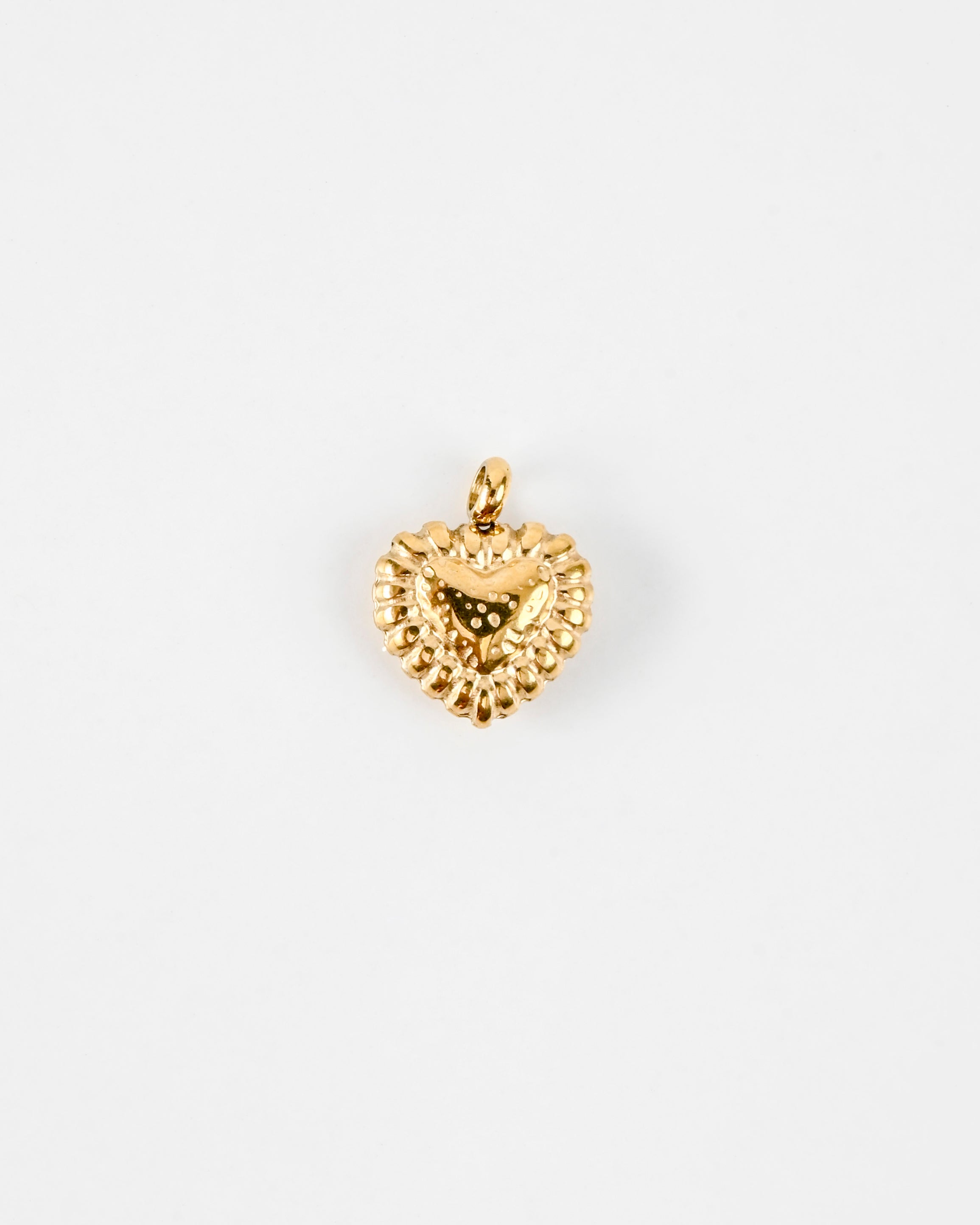 A softly scalloped heart charm, equal parts tender and nostalgic.