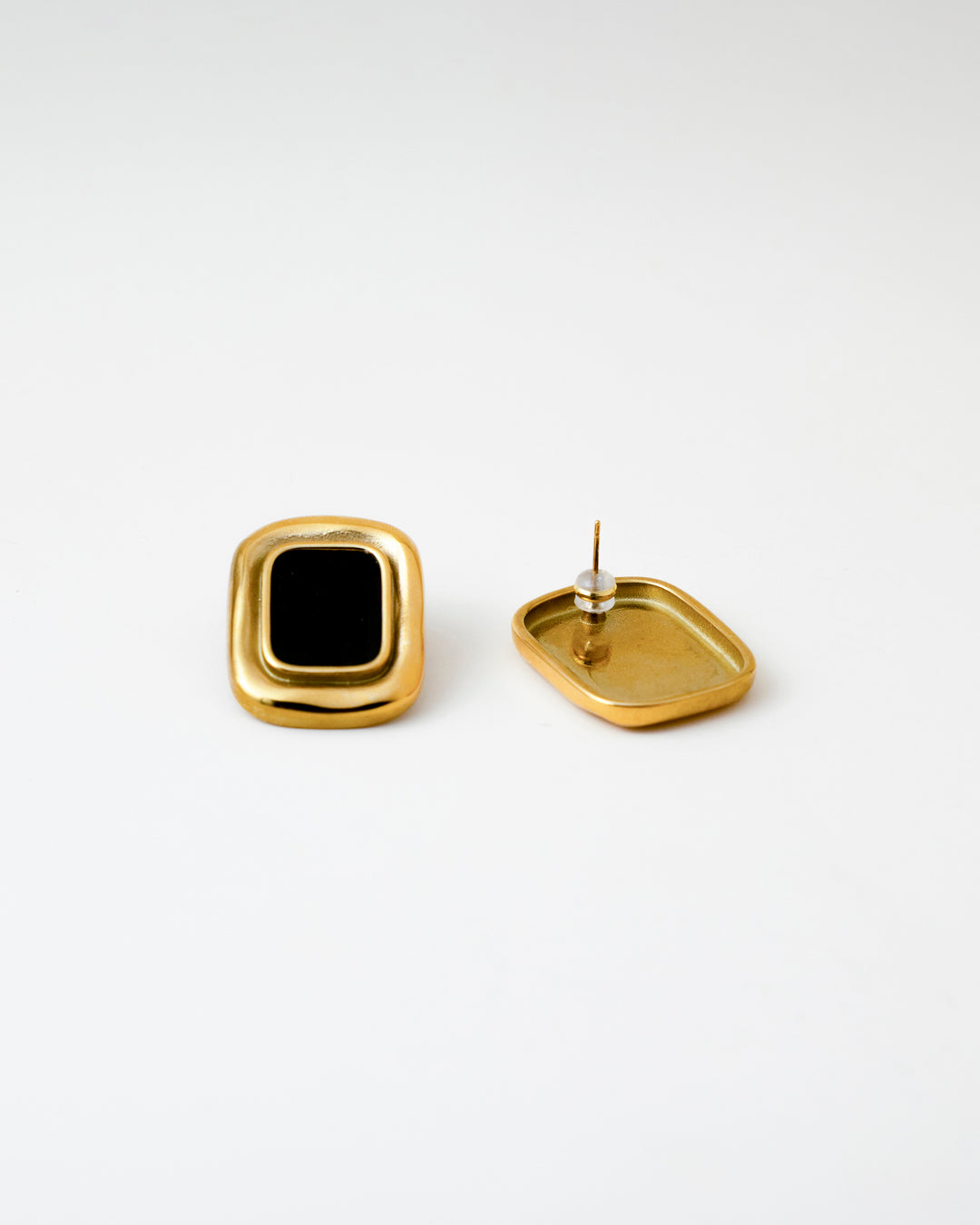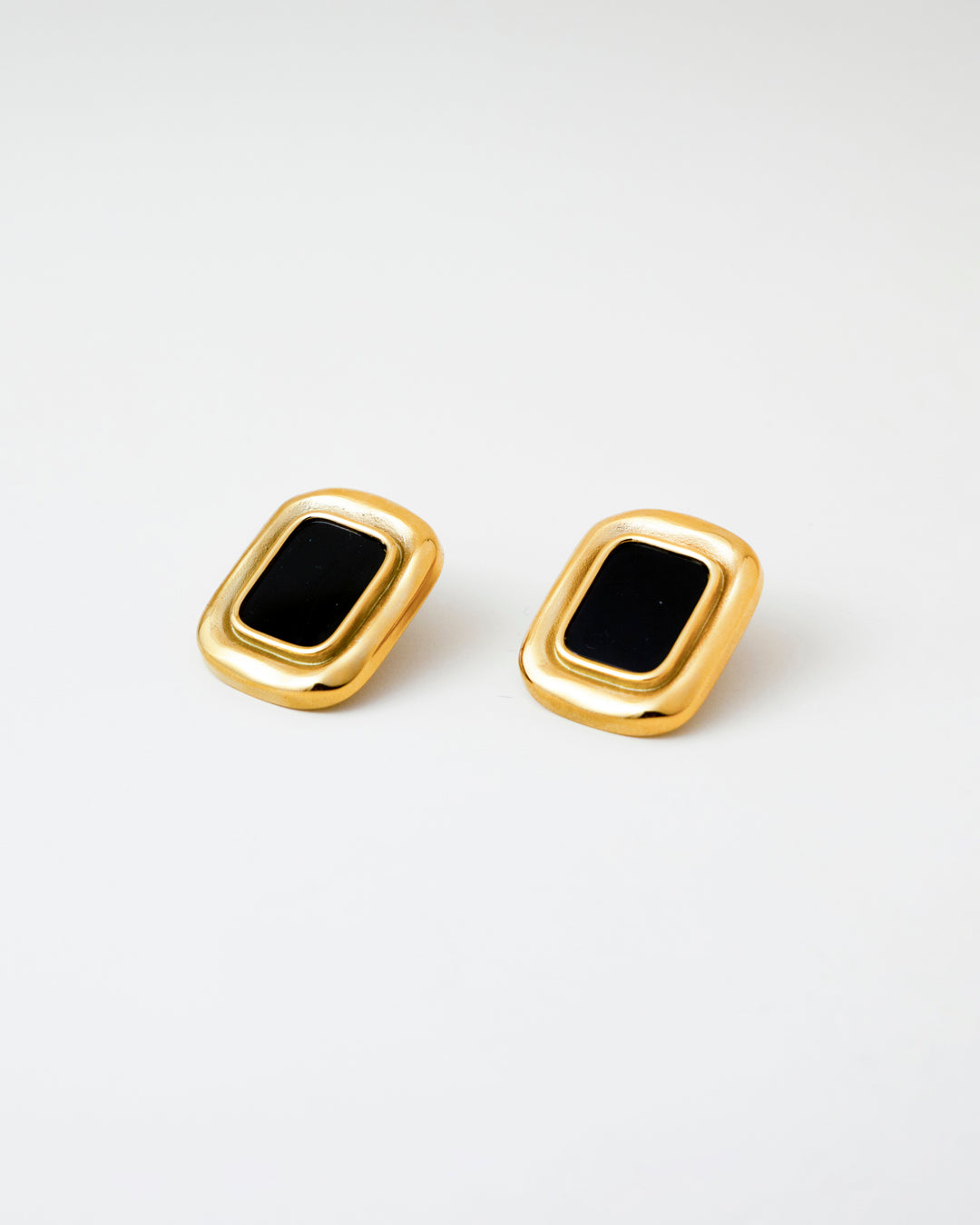 Sculptural and sharp with a touch of '90s nostalgia - the Hailey Studs are your go-to for when you want quiet luxury with a bold edge. Featuring a fluid gold frame and glossy inlay, they elevate everything from messy buns to slicked-back hair.