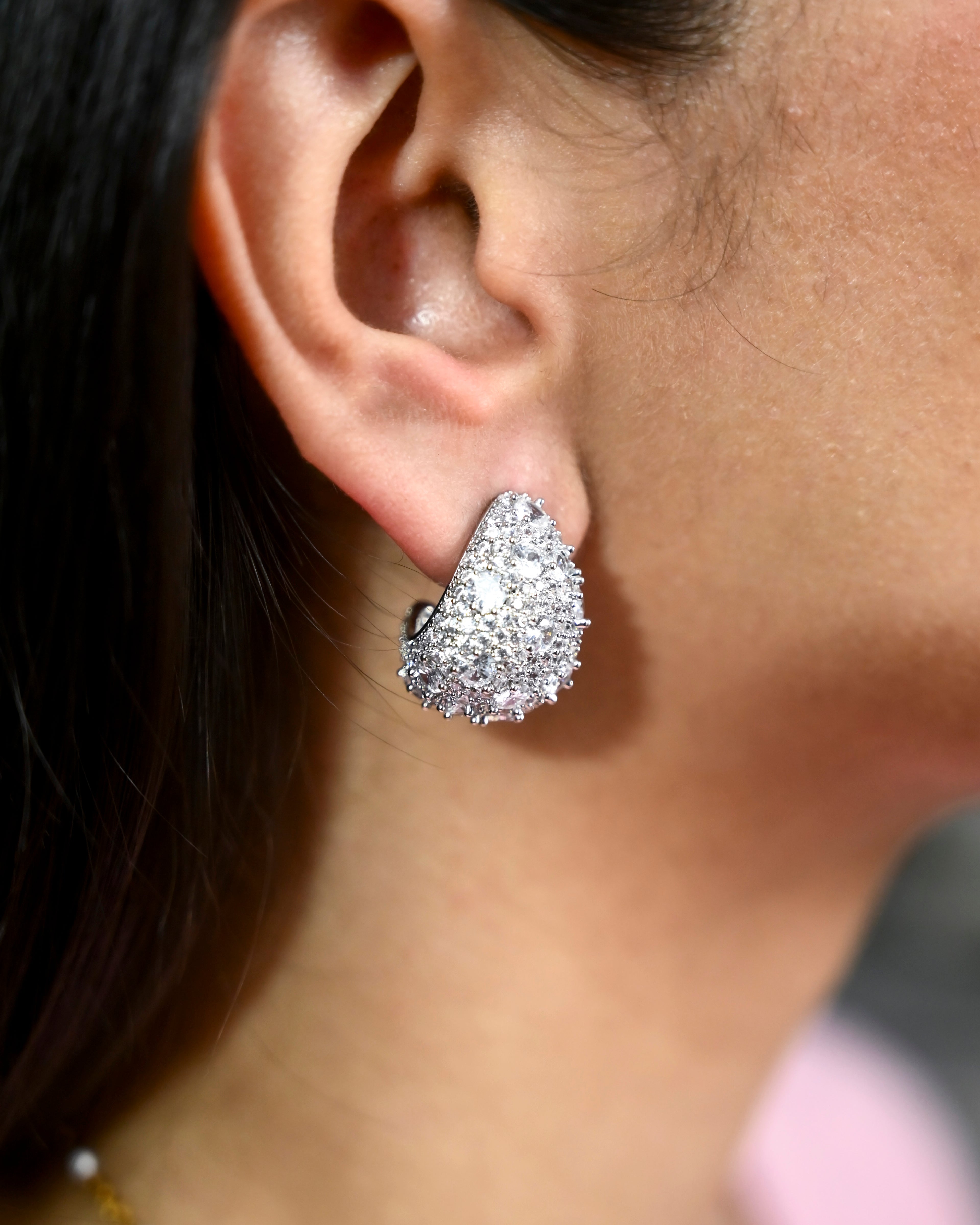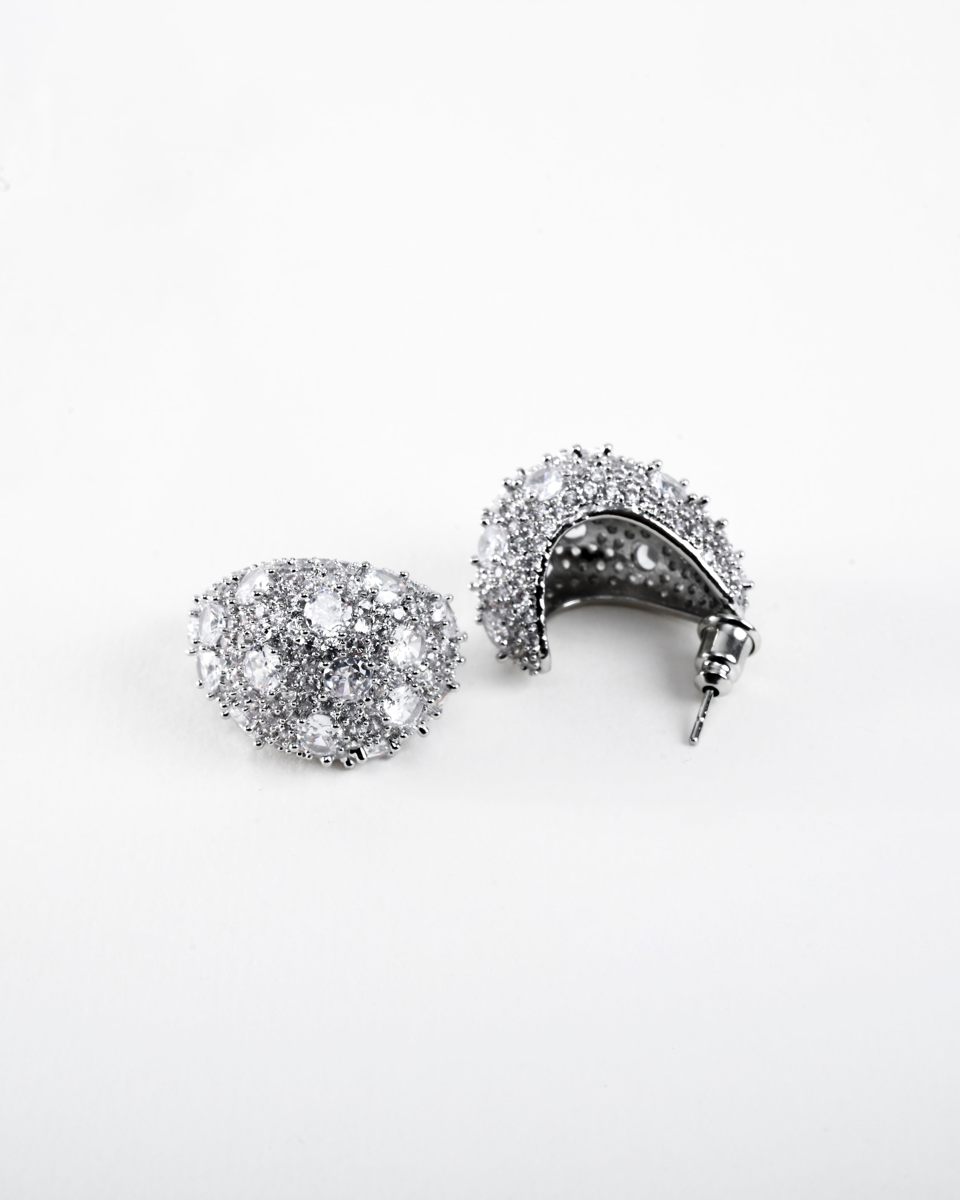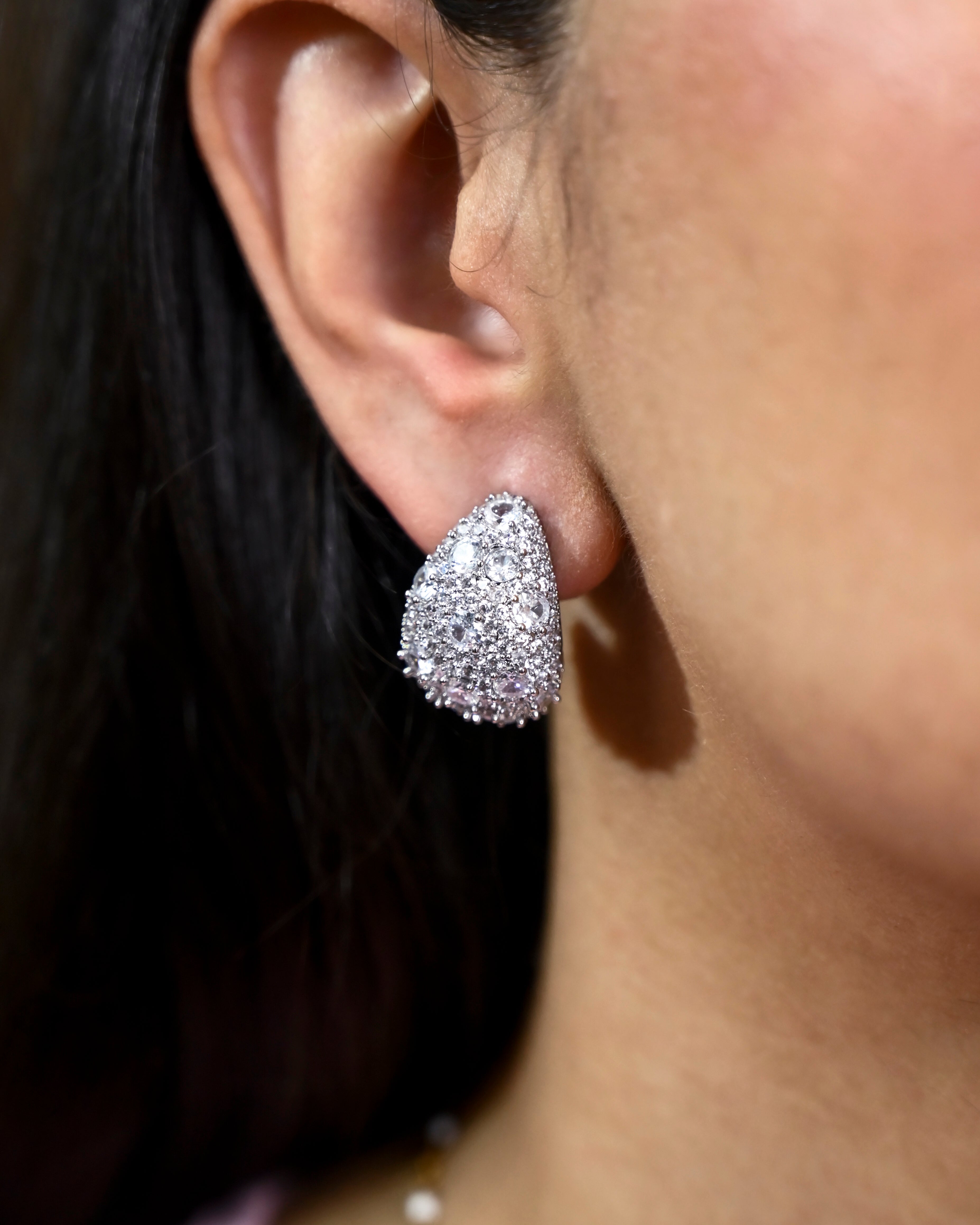 Liquid Light studs are sculptural yet soft, bold yet serene. Encrusted with glimmering zircons, they catch the light with every turn of your head - reminding you that elegance doesn’t need volume, only presence.