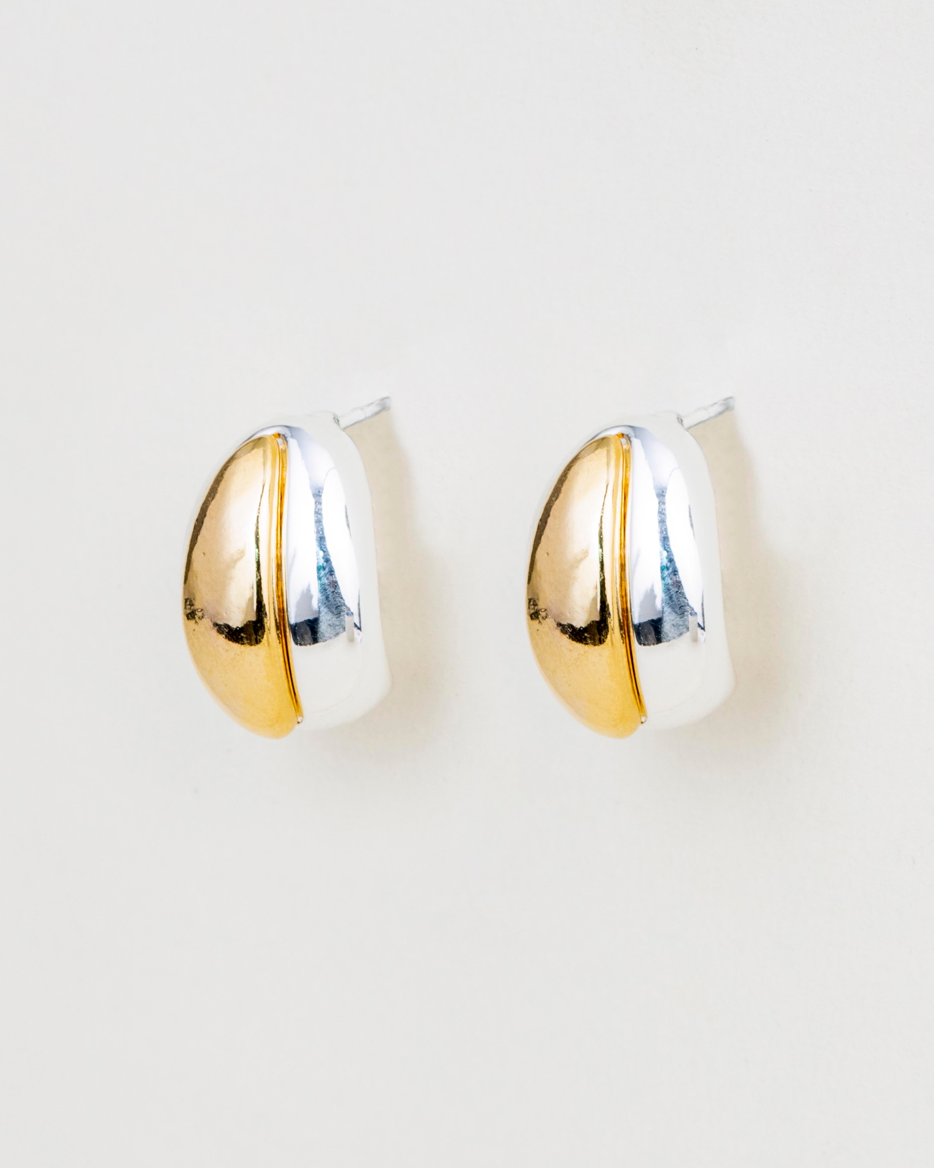 These two-toned lobe-hugging earrings have a sleek sculptural style with a rounded vault, making them a polished pair for everyday wear-at once understated yet striking.