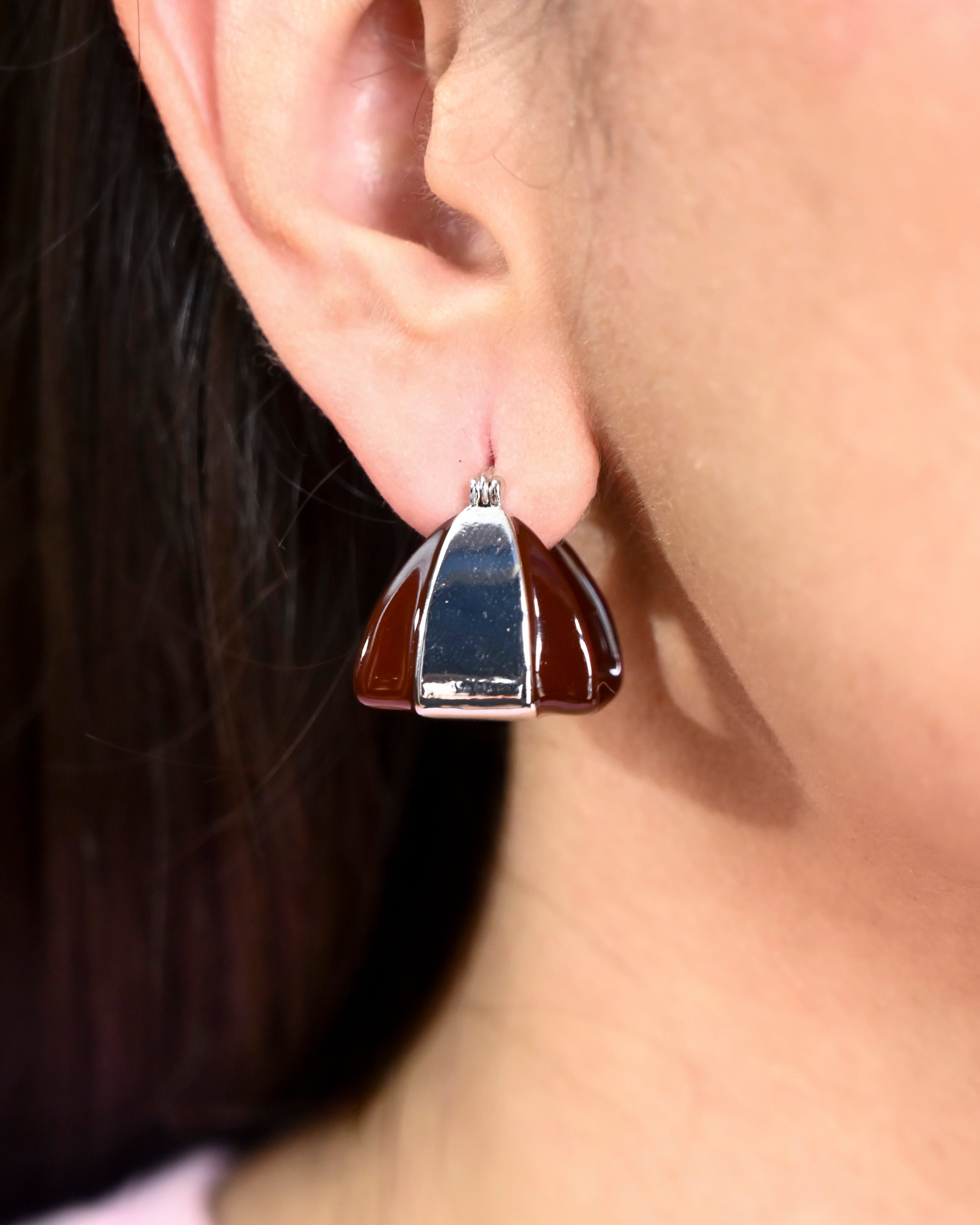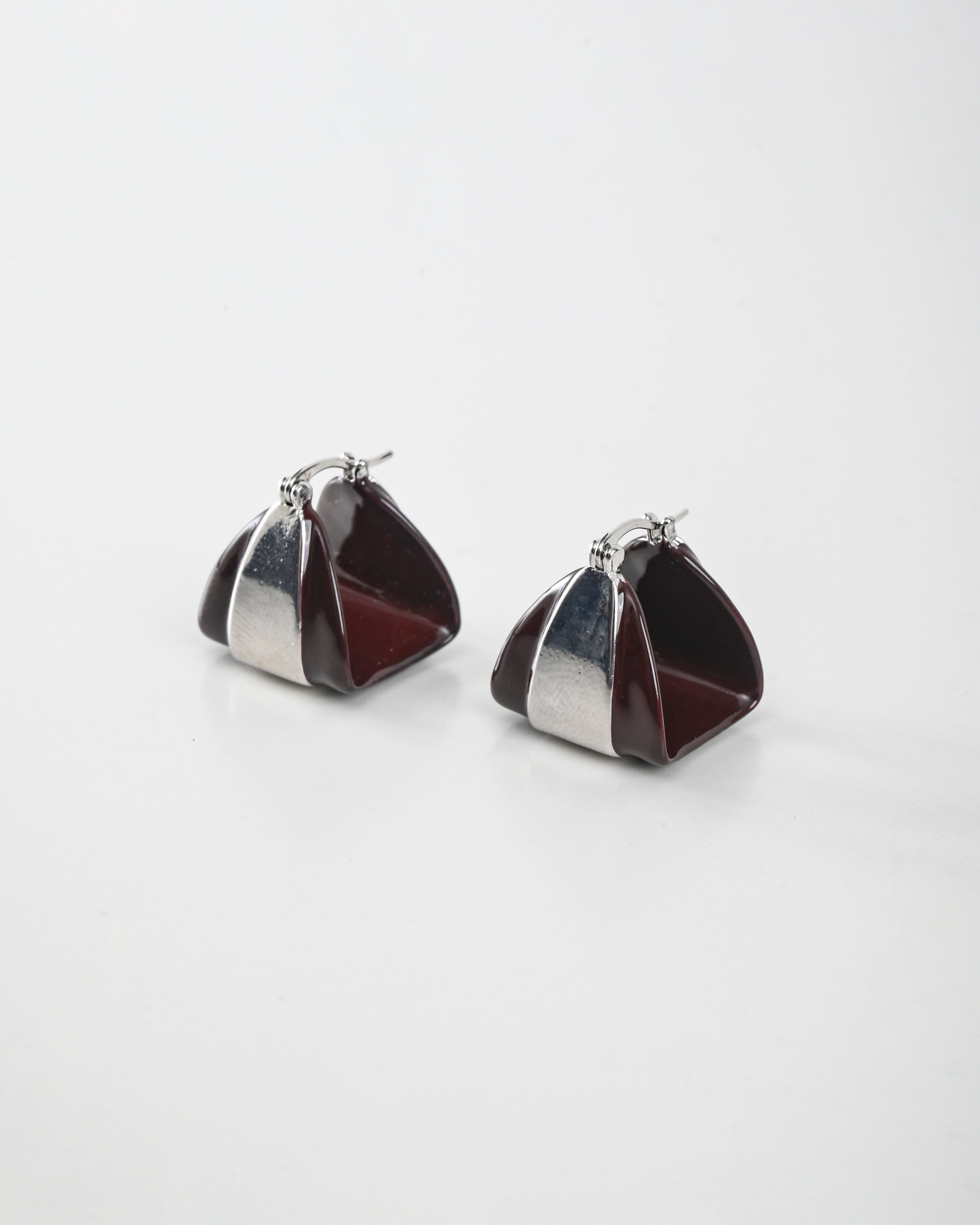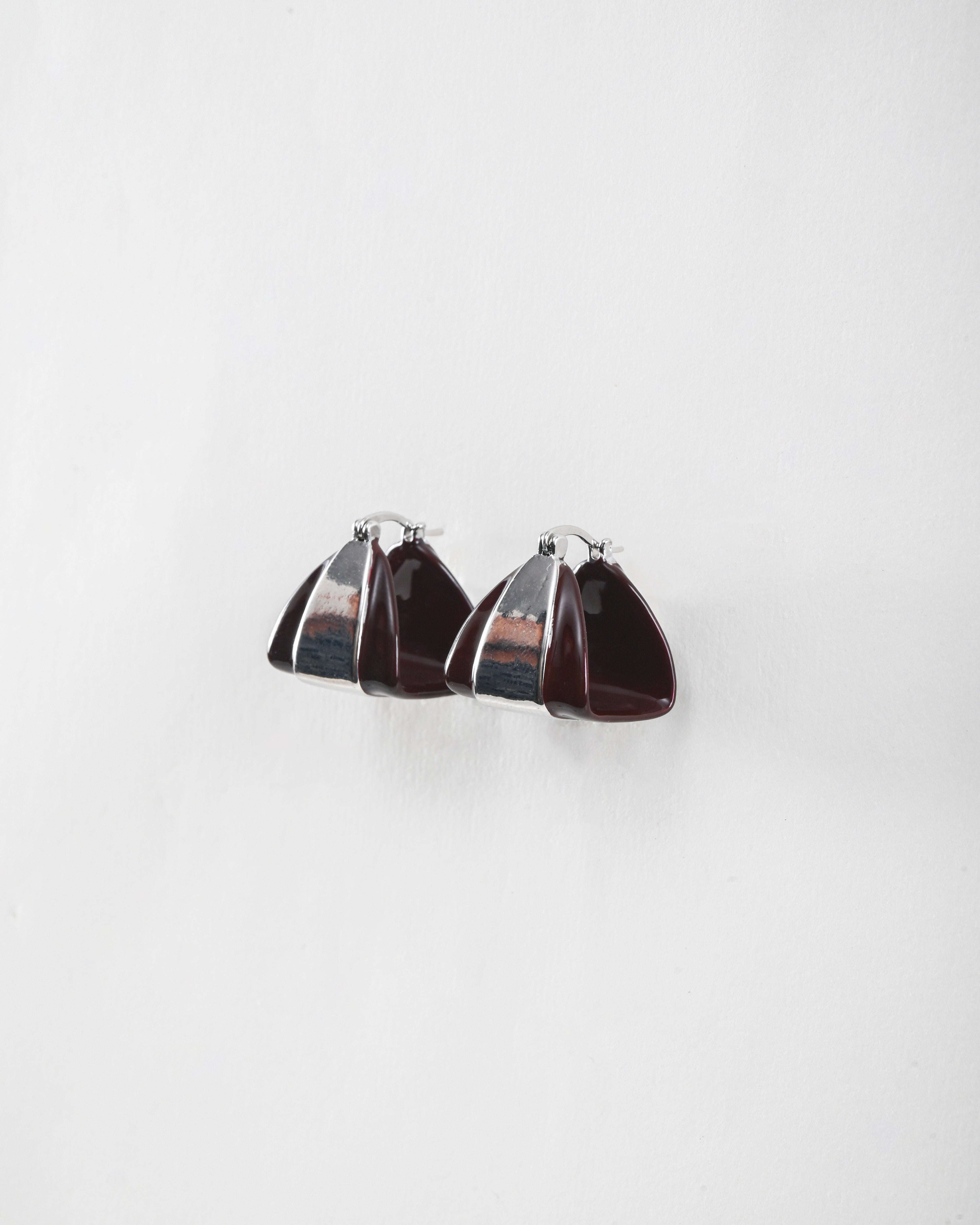 High-shine burgundy resin meets a raw silver centre in this reverse-dome silhouette. Chunky, directional, and designed to stand out even when everything else is pared back slightly.