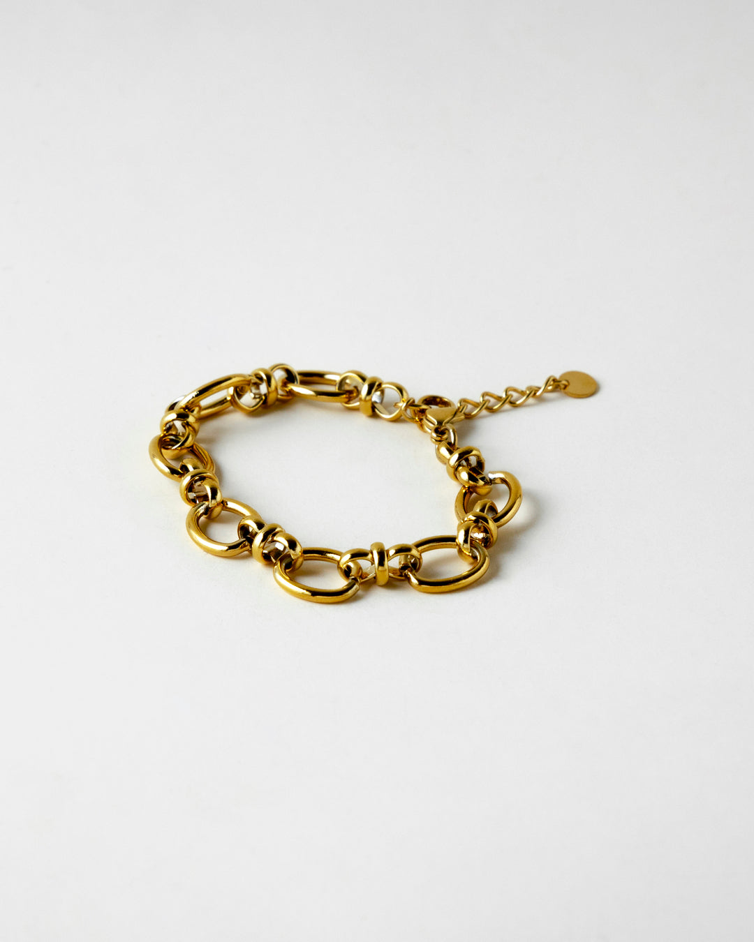 The Roma Bracelet draws from ancient Roman chains and modern minimalism. With its bold, elongated gold links and polished finish, this piece is made to layer or stand alone. An everyday icon with old-world charm.